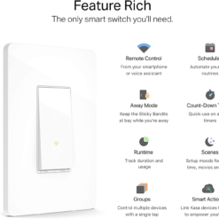 Smart Light Switch HS200, Single Pole 2.4Ghz Wi-Fi Light