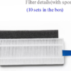 - what’s in the box: Side/Sweep brush x10 Roller brush X2 sets Filter x10 (with black sponge) Primary filter x1 Roller brush Cover X1 Cleaning tool x1