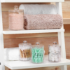 4 PACK Qtip Holder Dispenser for Cotton Ball, Cotton Swab, Cotton round Pads, Floss Picks – 10 Oz Clear Plastic Apothecary Jar Set for Bathroom Canister Storage Organization, Vanity Makeup Organizer