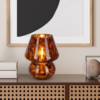 The Glass Mushroom Lamp Brown Tortoise is a versatile piece of home décor that can be use in various settings. It is perfect for use on a side table, desk, or nightstand, and it can also be use to add a touch of style and elegance to a living room, bedroom, or home office.