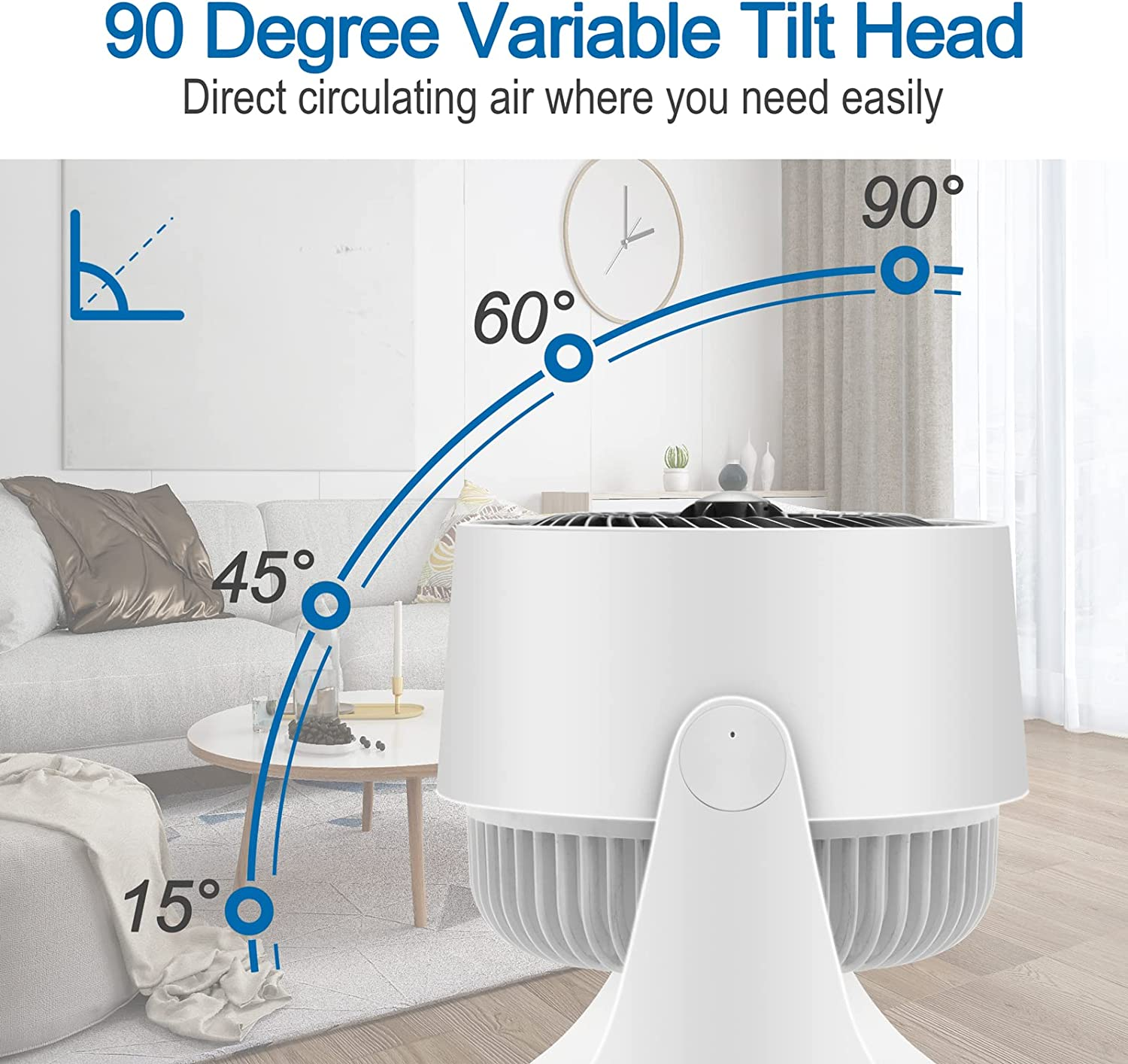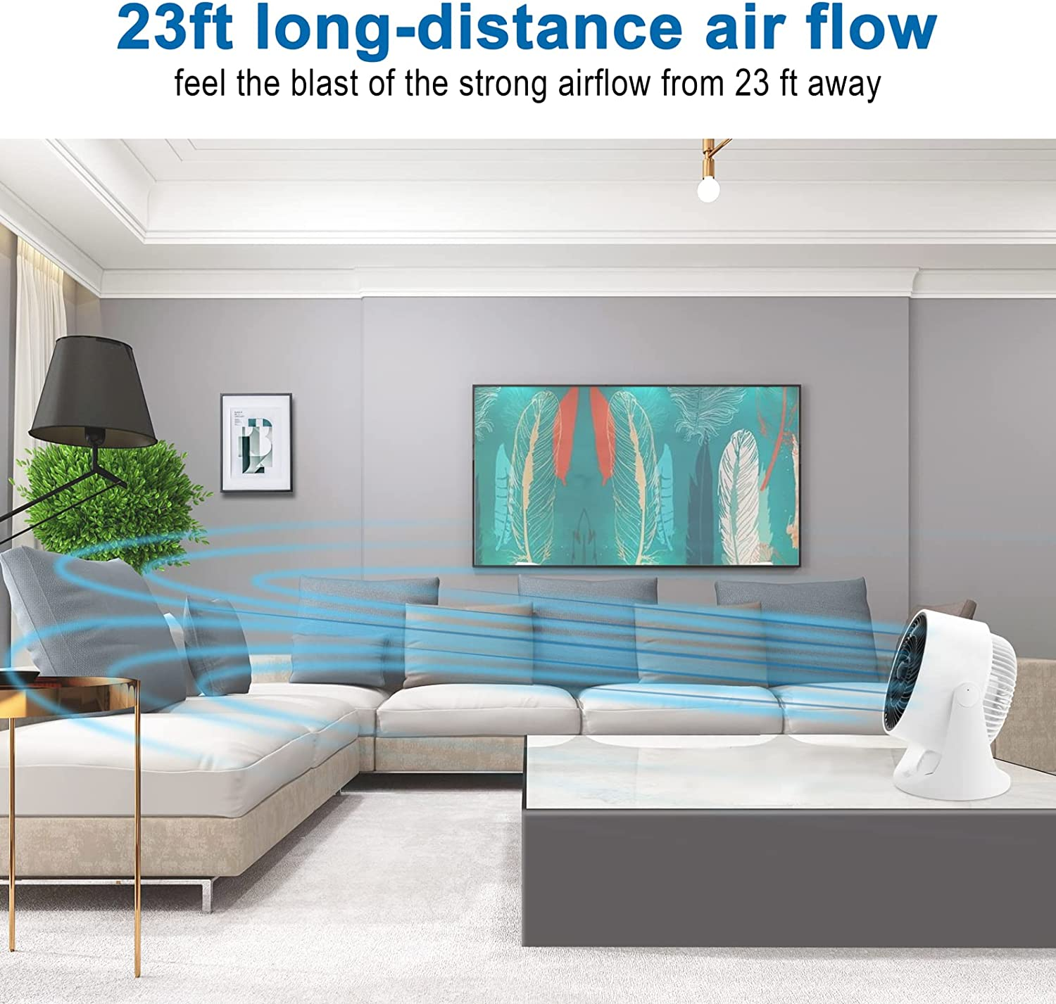 - 【Unique Turbo Blade Design】 The turbo force power air circulator fan creates more powerful air movement in a wider range at your home or workplace, It is the best choice for the four seasons. In summer, using this small fan with air conditioners, can quickly lower the indoor temperature and save energy. In winter, using air circulator fan with electric heaters, warm the room better and faster without consuming oxygen.