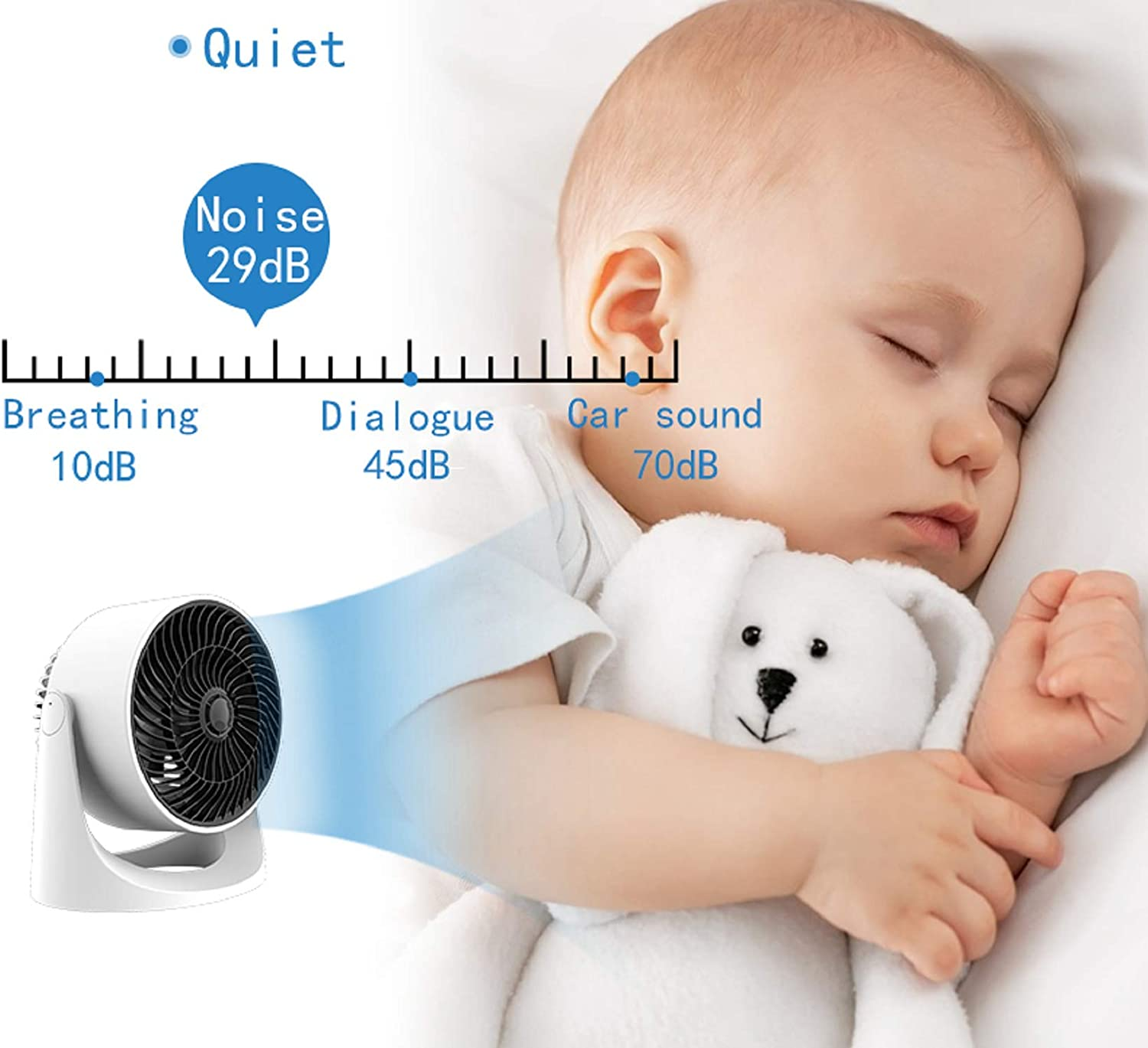 - 【Strong Airflow & Quiet Operation 】The desk fans built-in patent blades technology feel the blast of the strong airflow from 23 ft away. This quiet fan is equipped with a circulation motor, works with nearly voiceless at only 27db, and will not disturb you in your home or office due to its quiet operation.