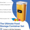 These food storage containers can be a perfect gift for anyone. Comes in a beautiful box with a chalkboard marker, labels and a measuring spoon set to equip you with everything. NOTE: Please review the “User Guide” entailing unbundling of the different sizes in the group.