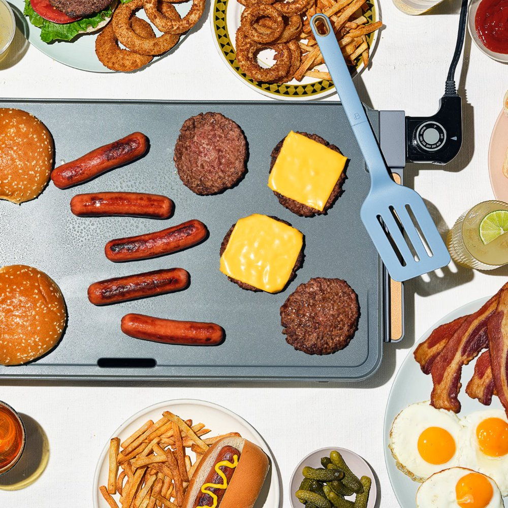 The Extra Large Griddle Cornflower Blue Beautiful 12″ X 22″ has a large cooking surface that measures 12″ X 22″. This large surface area allows you to cook multiple items simultaneously, making it perfect for cooking breakfast, lunch, or dinner for your family and friends.