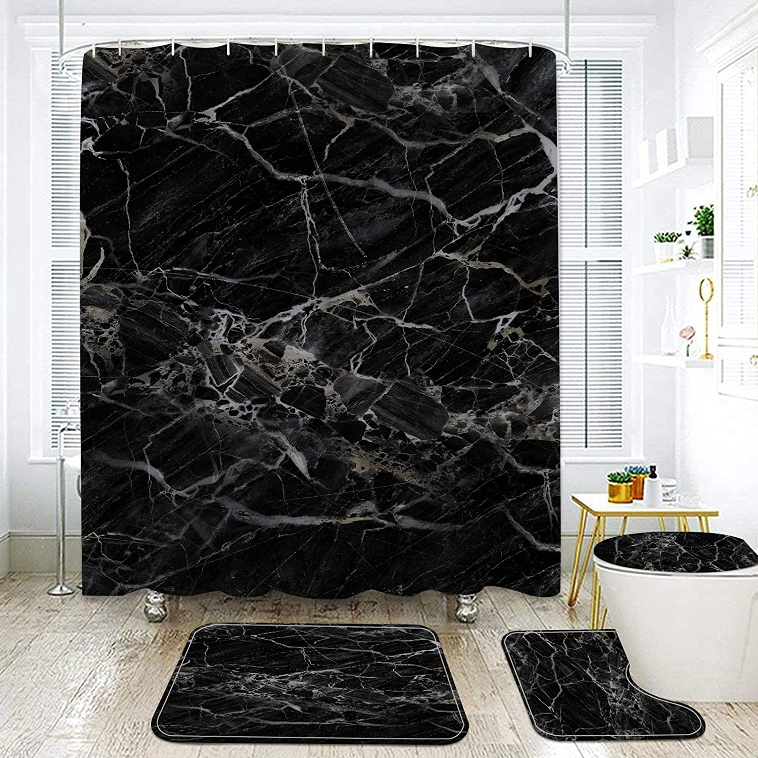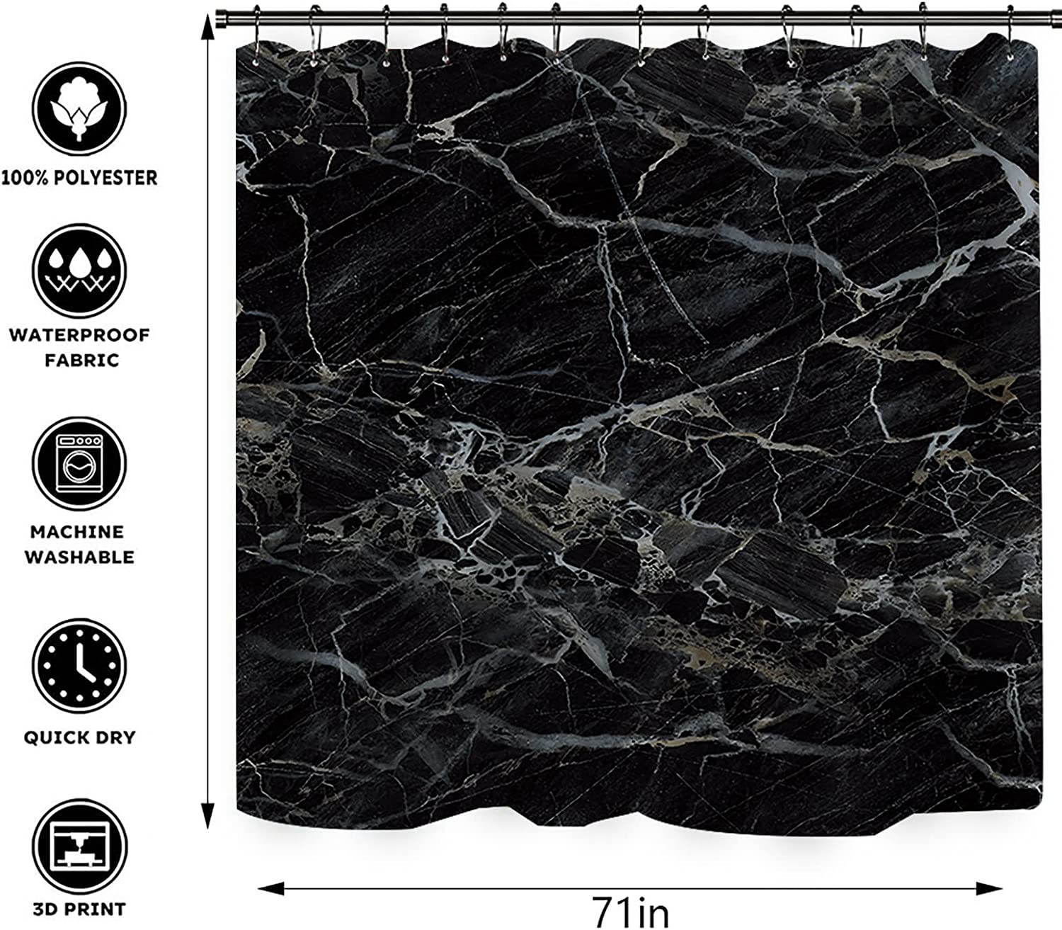 We used High-definition digital printing technology, this black marble modern style shower curtain bathroom decoration sets with clearly print in vibrant colors. No fading,which will bring luxury feeling to your bathroom. Perfect for bathroom decoration.
