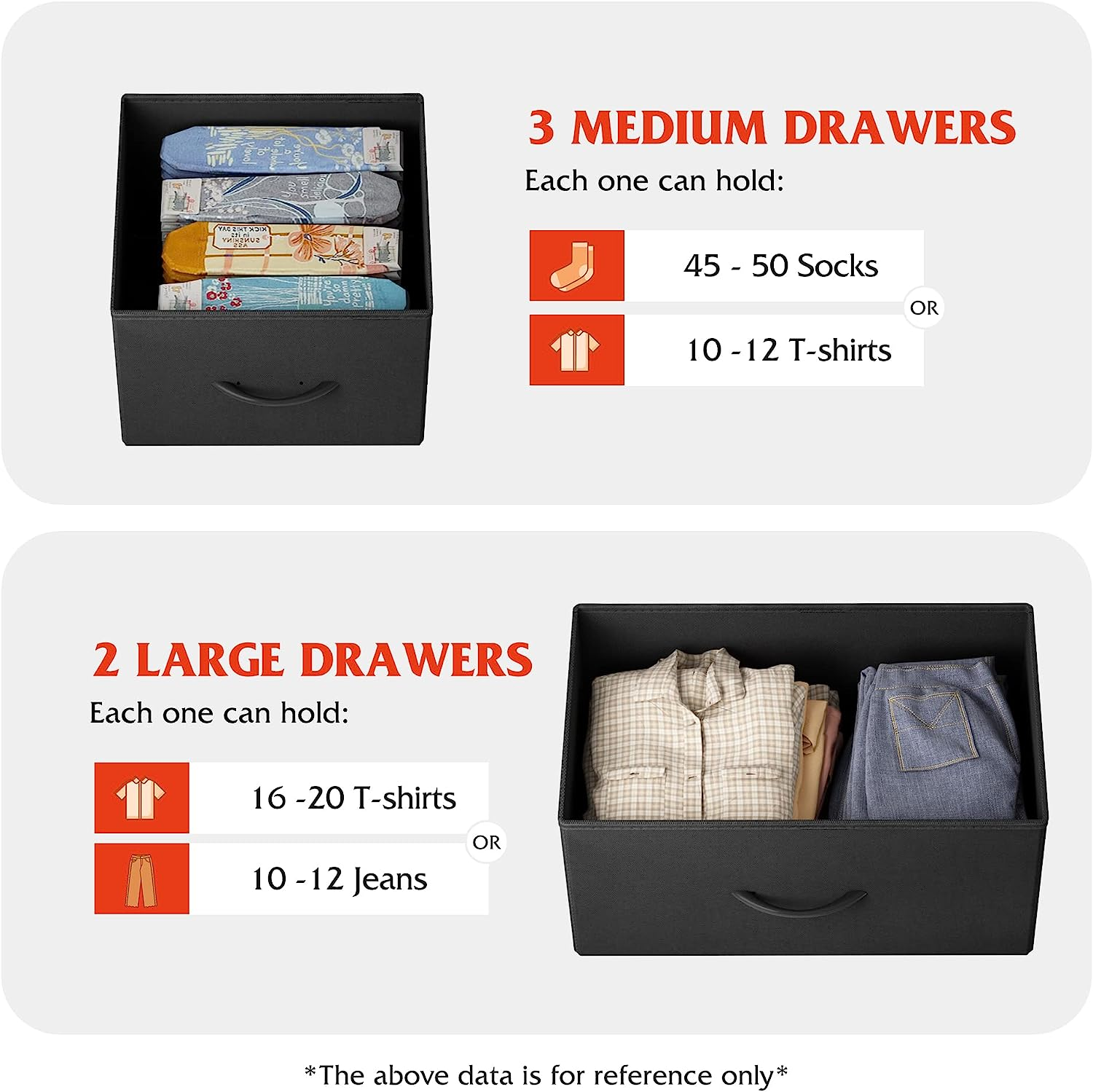 - Roomy Storage Space: The dresser features 5 foldable deep drawers, which provide endless organizational possibilities and protect your privacy as well.