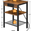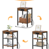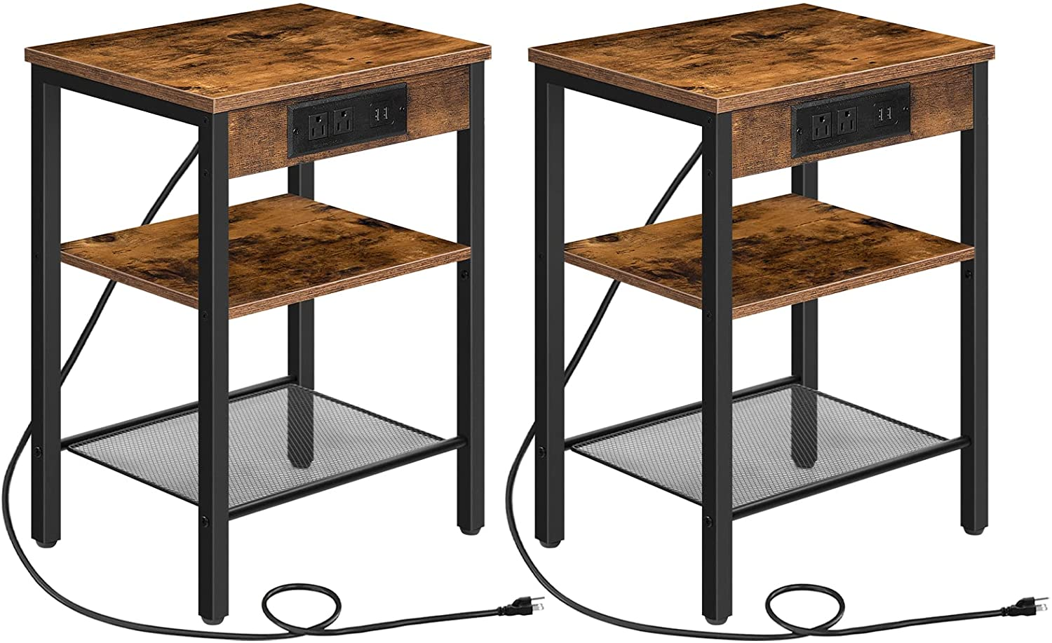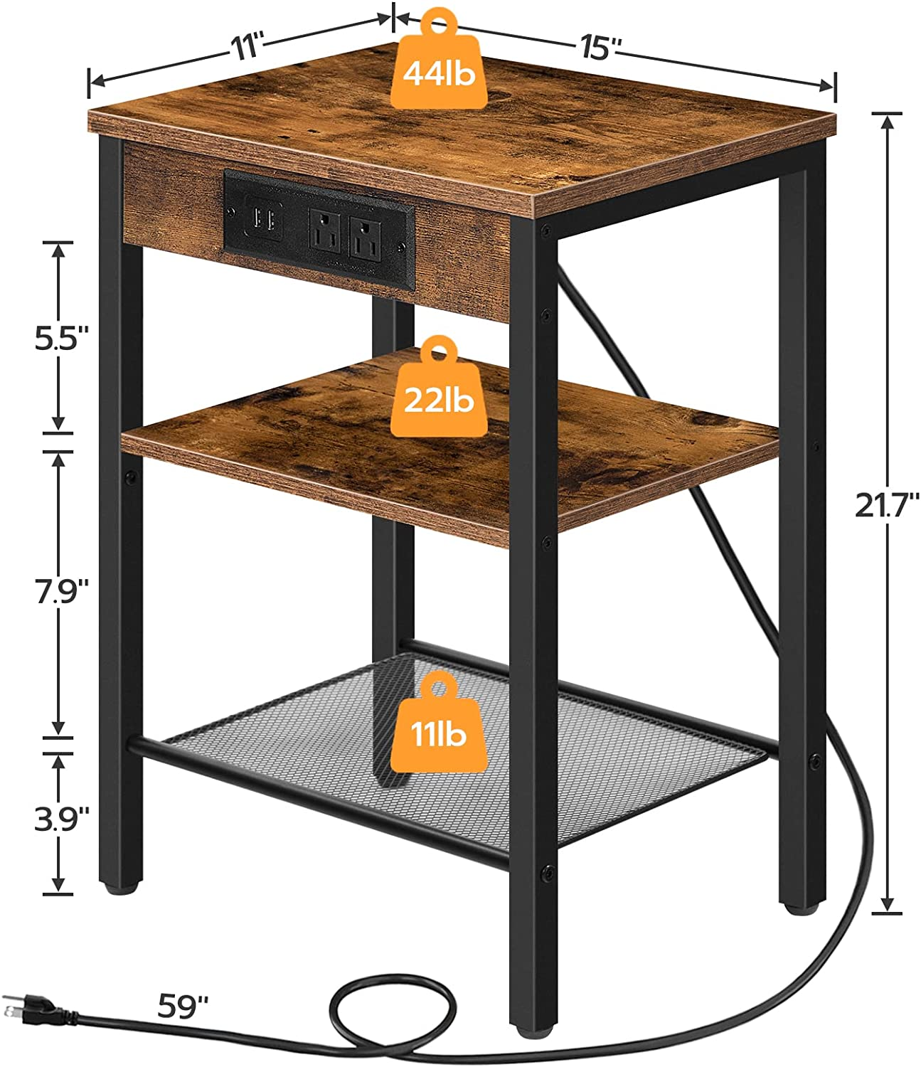 This side table is designed in 3 tiers, ample for your daily storage. The top can place your alarm clock, album, iPad, snacks and other daily necessities or exhibitions. The bottom shelf is an extra space for books, magazines or other items. The charging station with 2 sockets and 2 USB ports is enough to charge your laptop, phone etc, saving time and effort without looking for USB charging cable or outlets.
