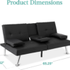 - ROOM FOR 2: This stylish futon sofa has a 500-pound weight limit that lets you lounge in good company while utilizing a fold-down armrest with convenient cupholders in the middle