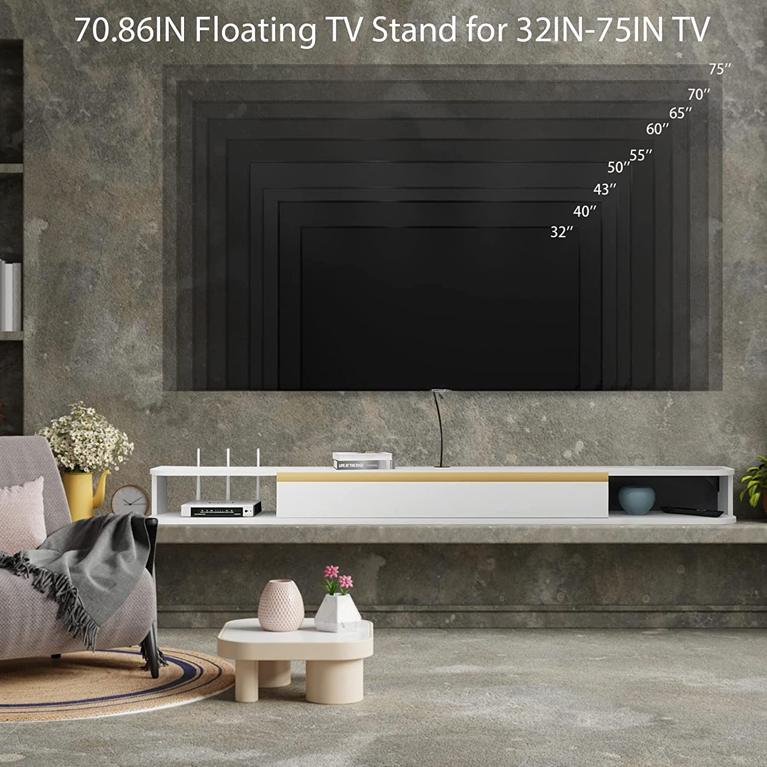 • [Stylish & Safety] Floating TV unit can be arbitrarily matched with various furniture. Modern and simple design will add elegance and vitality to living room & office. Anti-collision design with rounded corners can protect children from getting injury.