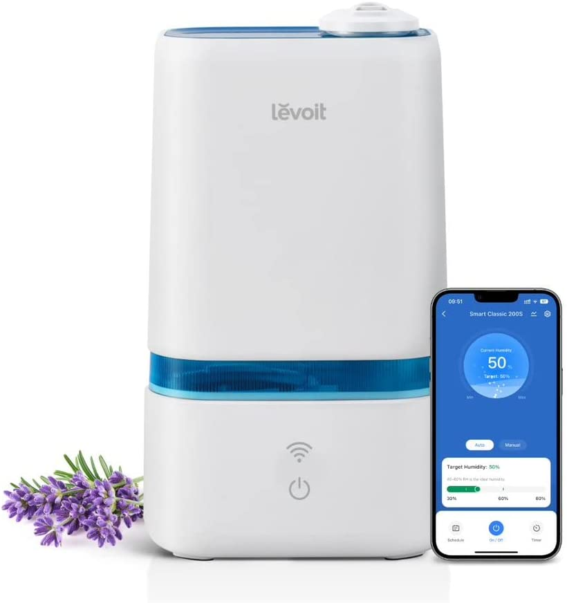 LEVOIT Humidifiers for Bedroom, Smart Wi-Fi Cool Mist Essential Oils Diffuser in One, 4L Ultrasonic Air Vaporizer for Plants, Baby, Quiet for Home Large Room, Nursery, 40H