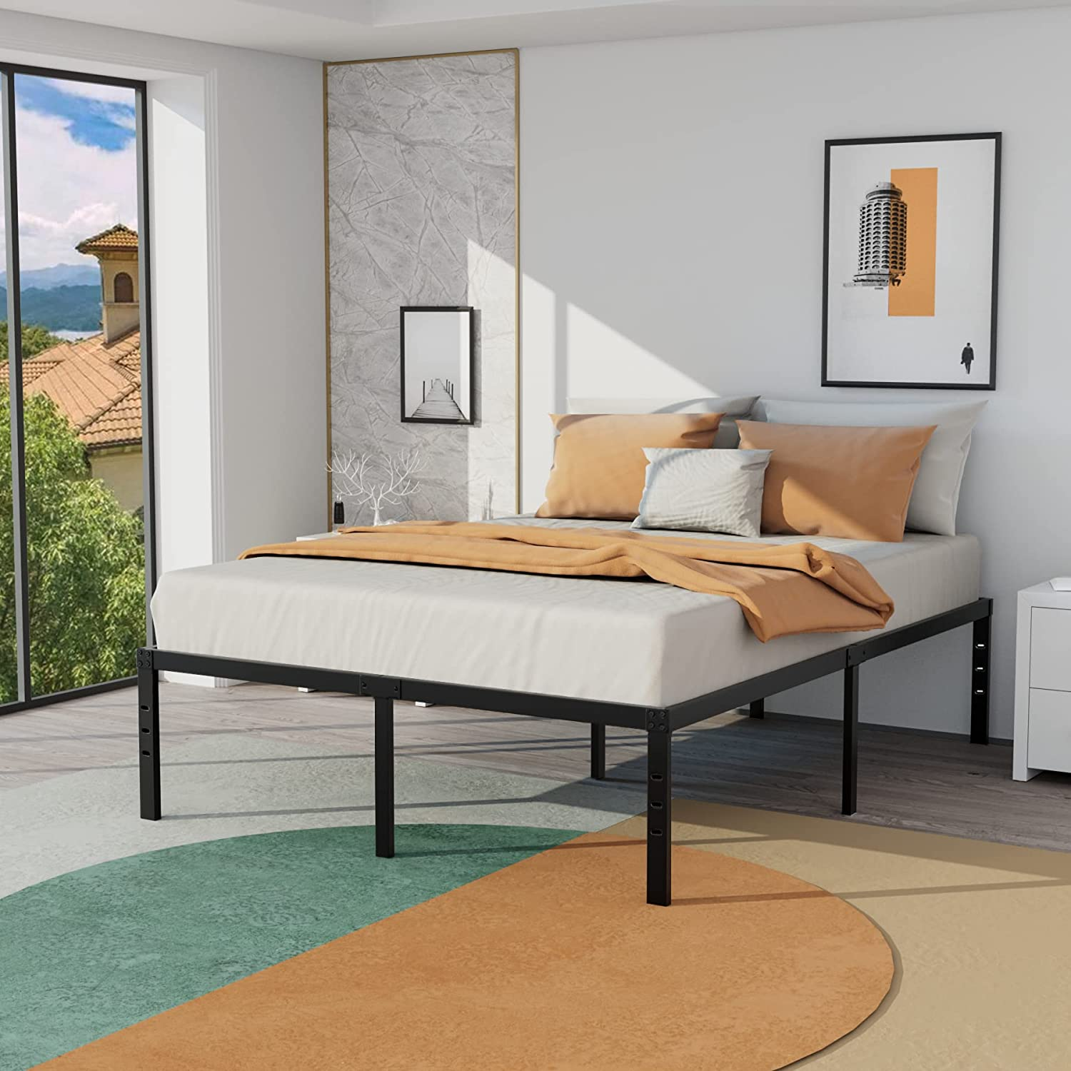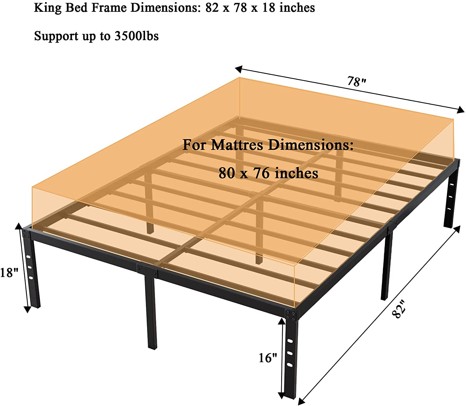 King Size Bed Frame-18 Inch Tall Sturdy Platform Bed Base-Extra Heavy Duty Strong Steel Solid Metal Foundation- Easy Assemble/Noise Free/Non-Slip/Squeaky Free/No Box Spring Needed/King