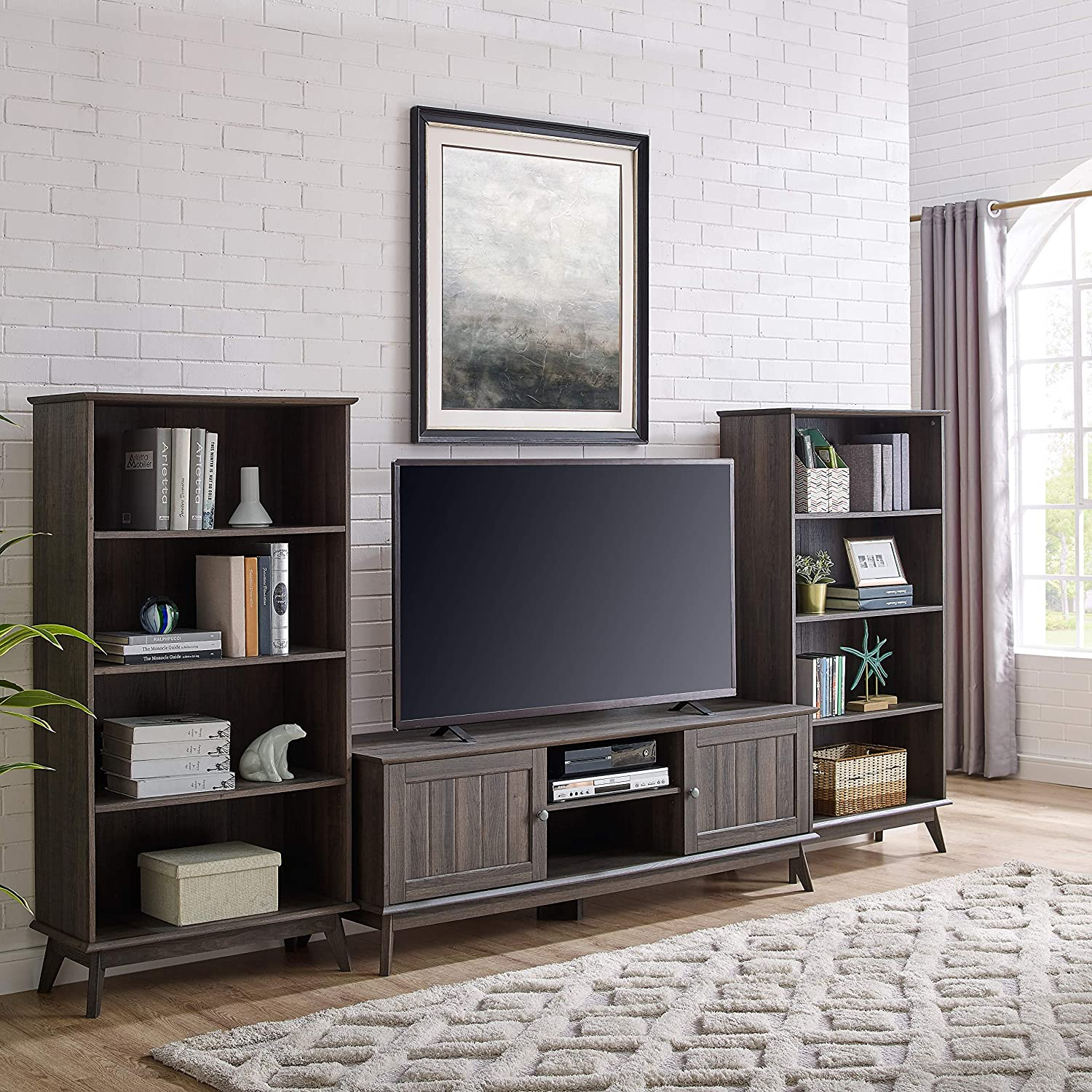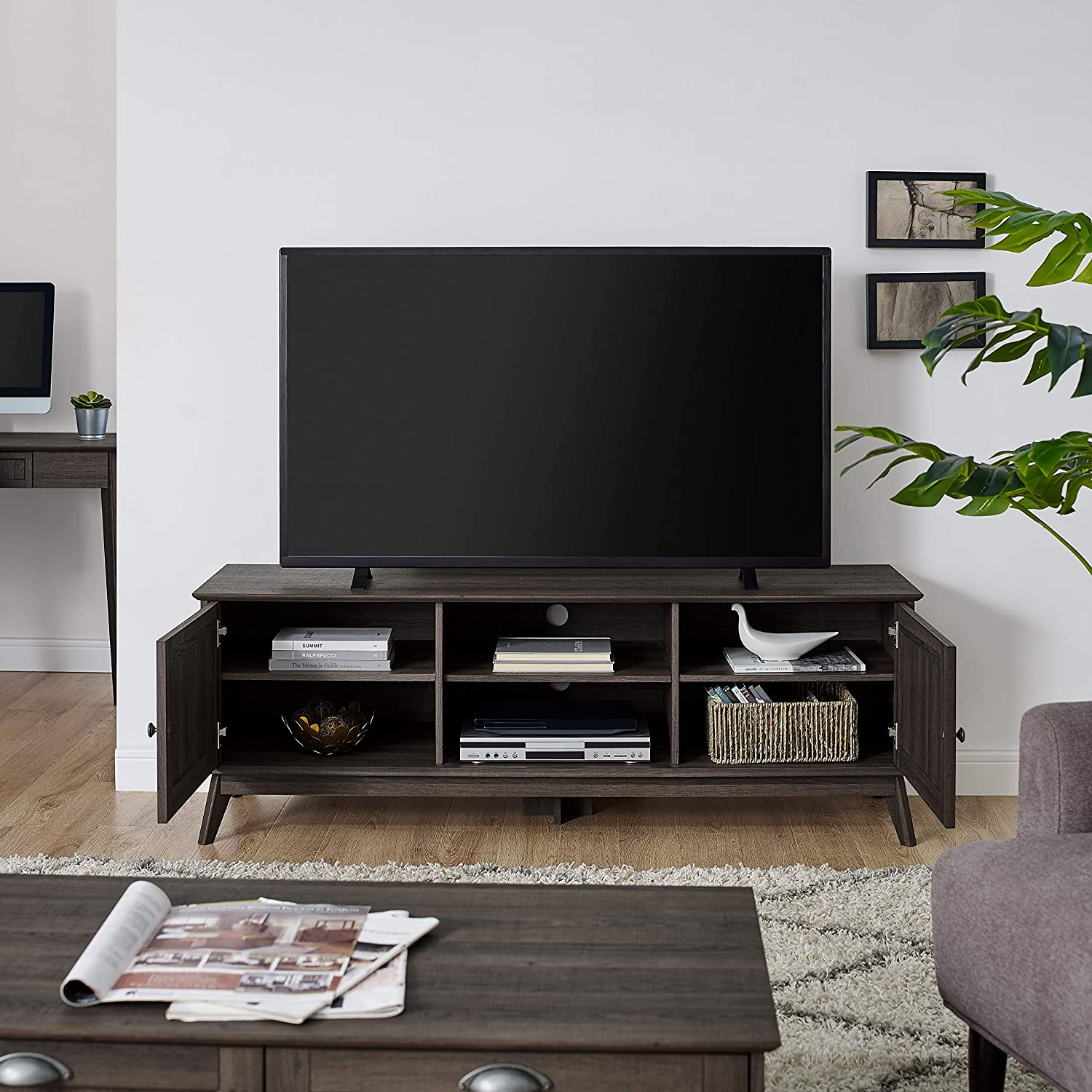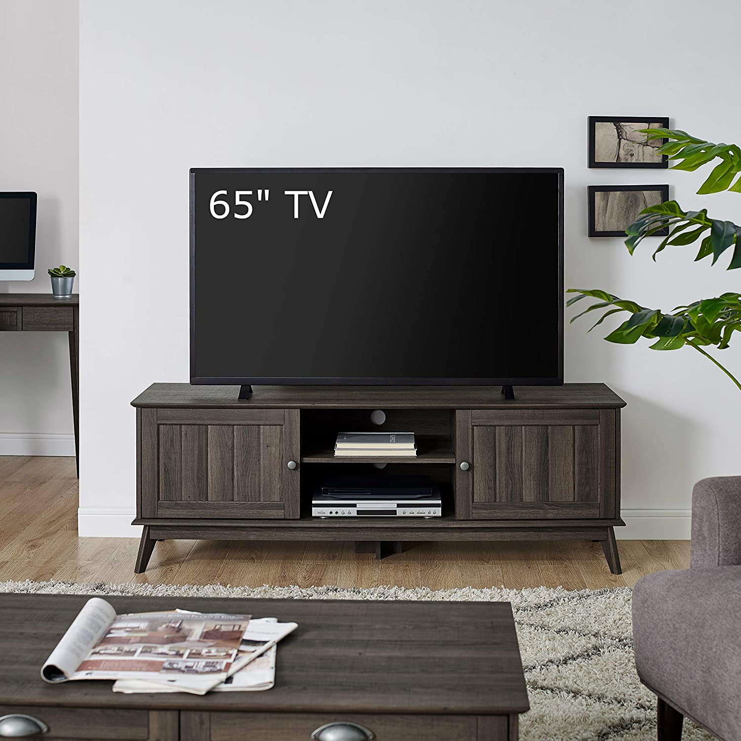 - ✔DESIGNED FOR STYLE AND FUNCTIONALITY: This quality Mid-Century multi-tasker can enhance the look of your living room, den or family room. Not only does it showcases your TV, but it also helps you stay organized by serving as storage space for your books, DVDs, game consoles, and other media equipment. Durable, thick ,and high-pressure laminate will better withstand daily use and abuse than pure wood or veneer.