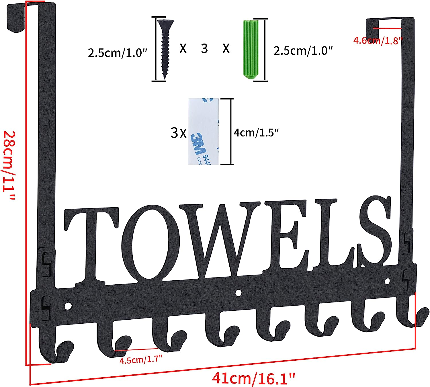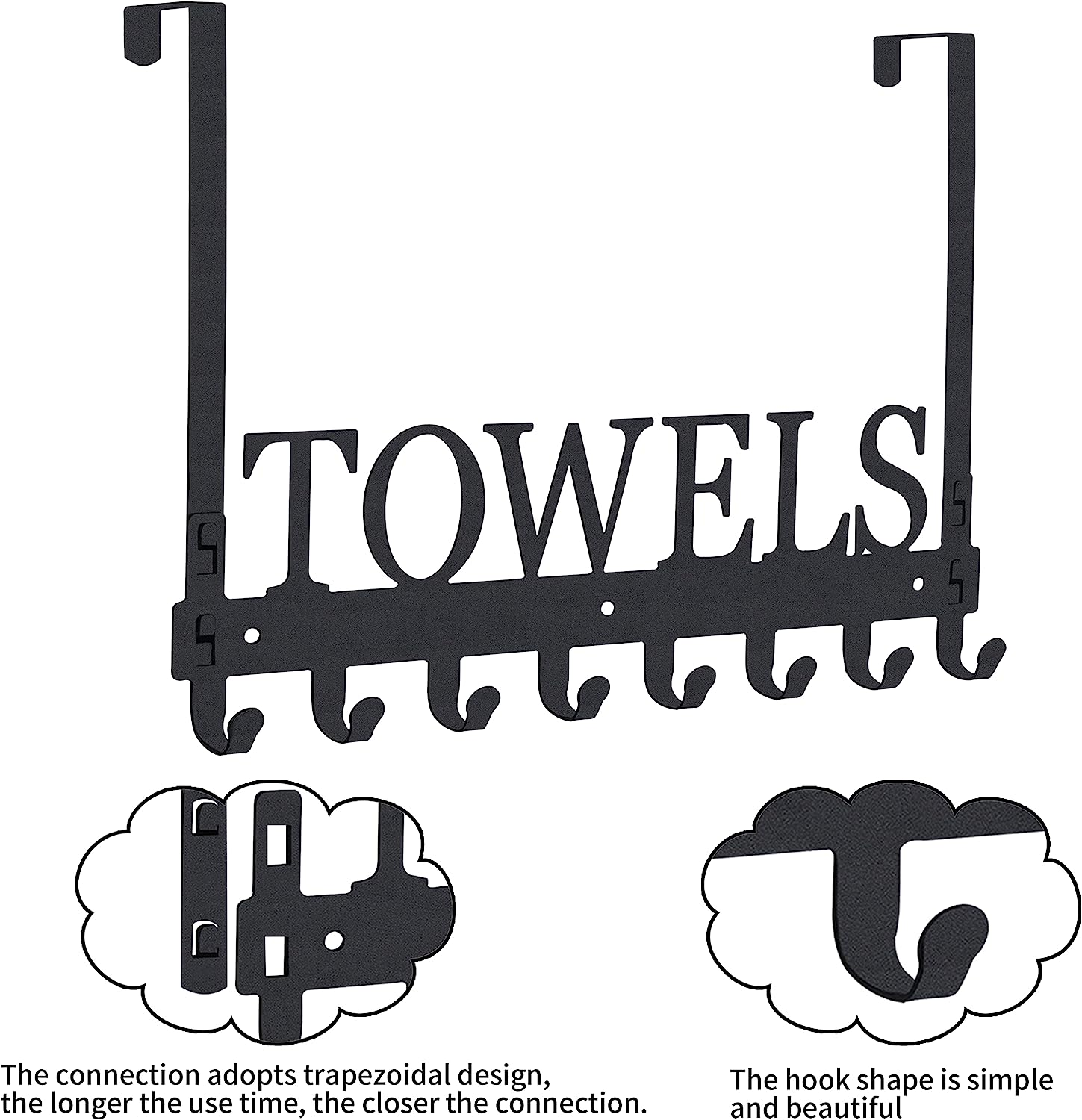 Over the Door Hooks, Towel Holder for Bathroom, Door Mount Towel Rack Towel Hooks for Bathroom Towel Hanger for Wall Black Sandblasted Metal