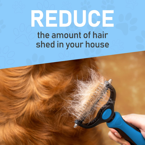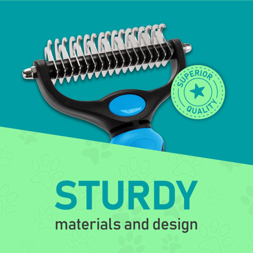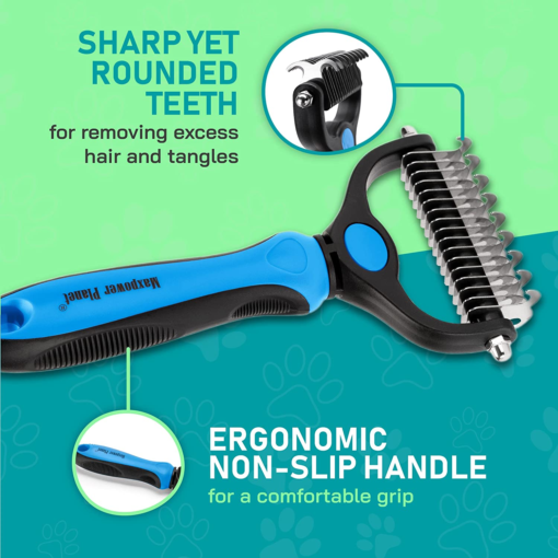 Pet Grooming Brush – Double Sided Shedding and Dematting Undercoat Rake Comb for Dogs and Cats,Extra Wide, Blue, Dog Grooming Brush, Dog Shedding Brush