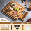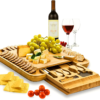 Premium Bamboo Cheese Board is a large charcuterie set that comes with everything you need to serve your favorite cheeses and meats. The set includes a cheese platter serving tray, 4 stainless steel knives, and a wine opener. The board is made from natural bamboo, which not only looks beautiful but is also durable and eco-friendly.