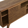 - SPACIOUS STORAGE – Designed for media storage and gaming consoles, this entertainment center features spacious shelving with two adjustable sliding slatted doors for both display and concealed storage