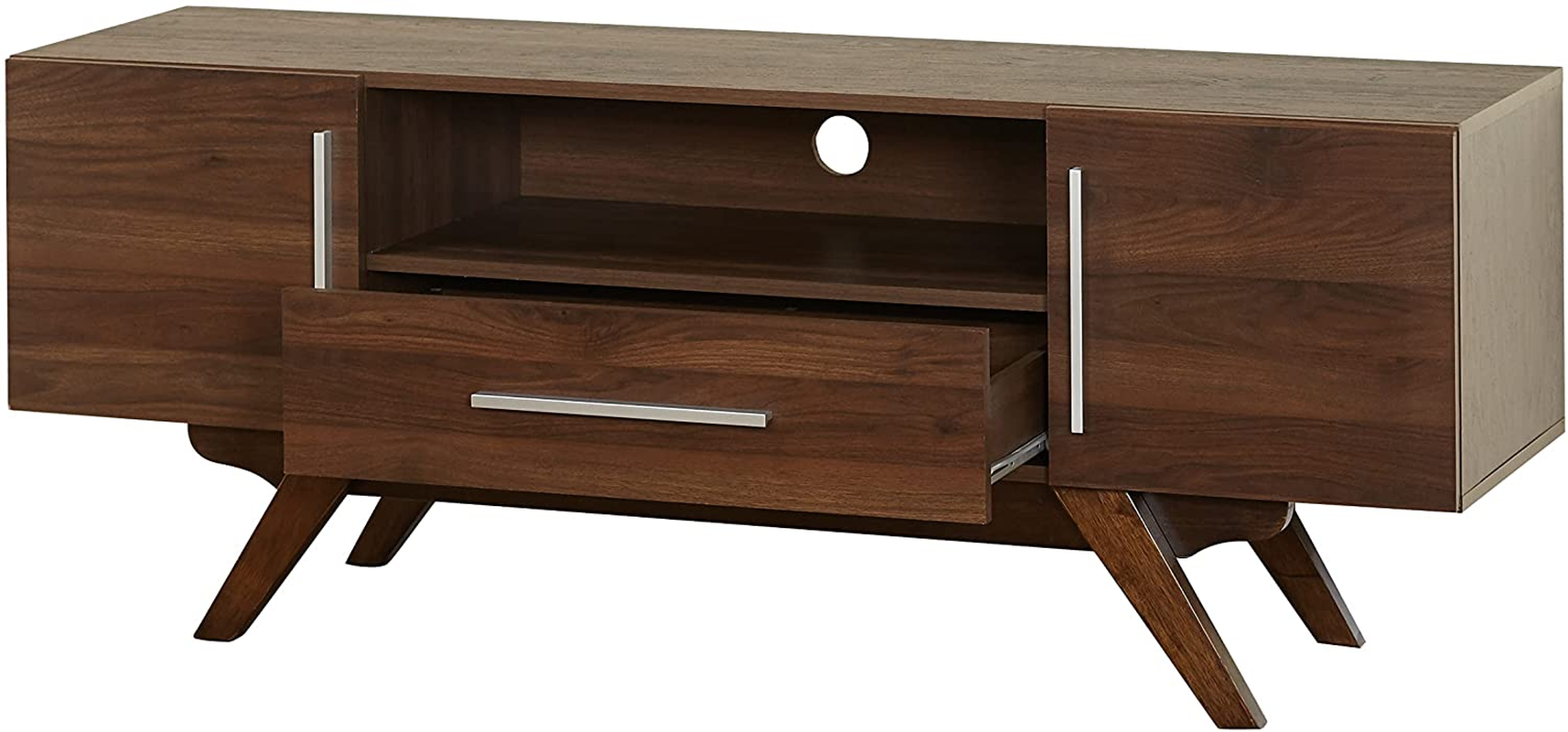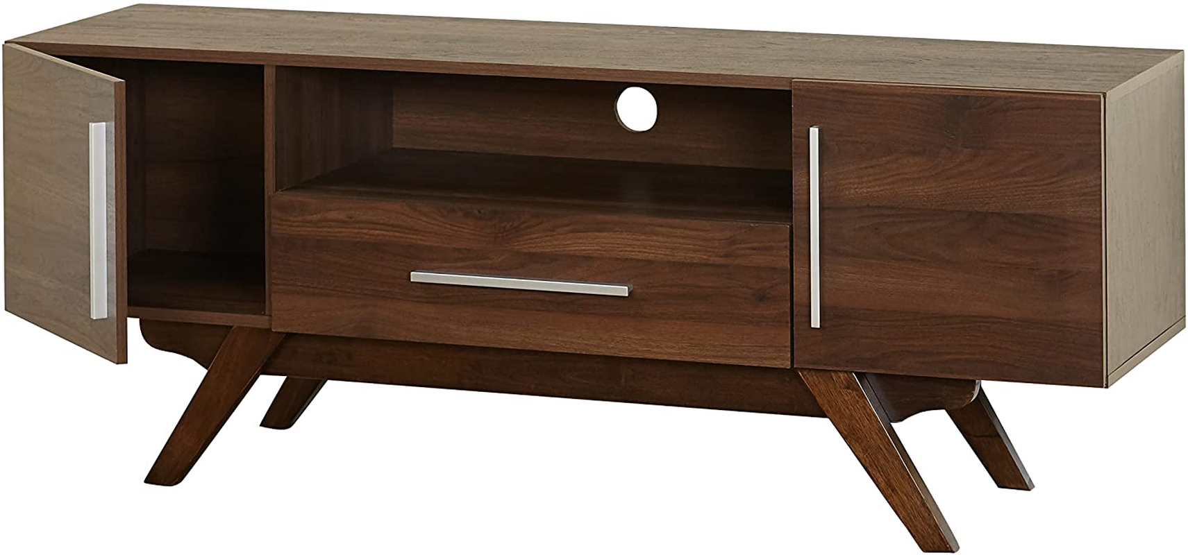 - VERSATILE & FUNCTIONAL – The Mid Century Modern TV Stand features 2 side cupboards, a center drawer and an open shelf for your other media and game consoles. You can count on this entertainment stand to provide lots of space you can utilize.