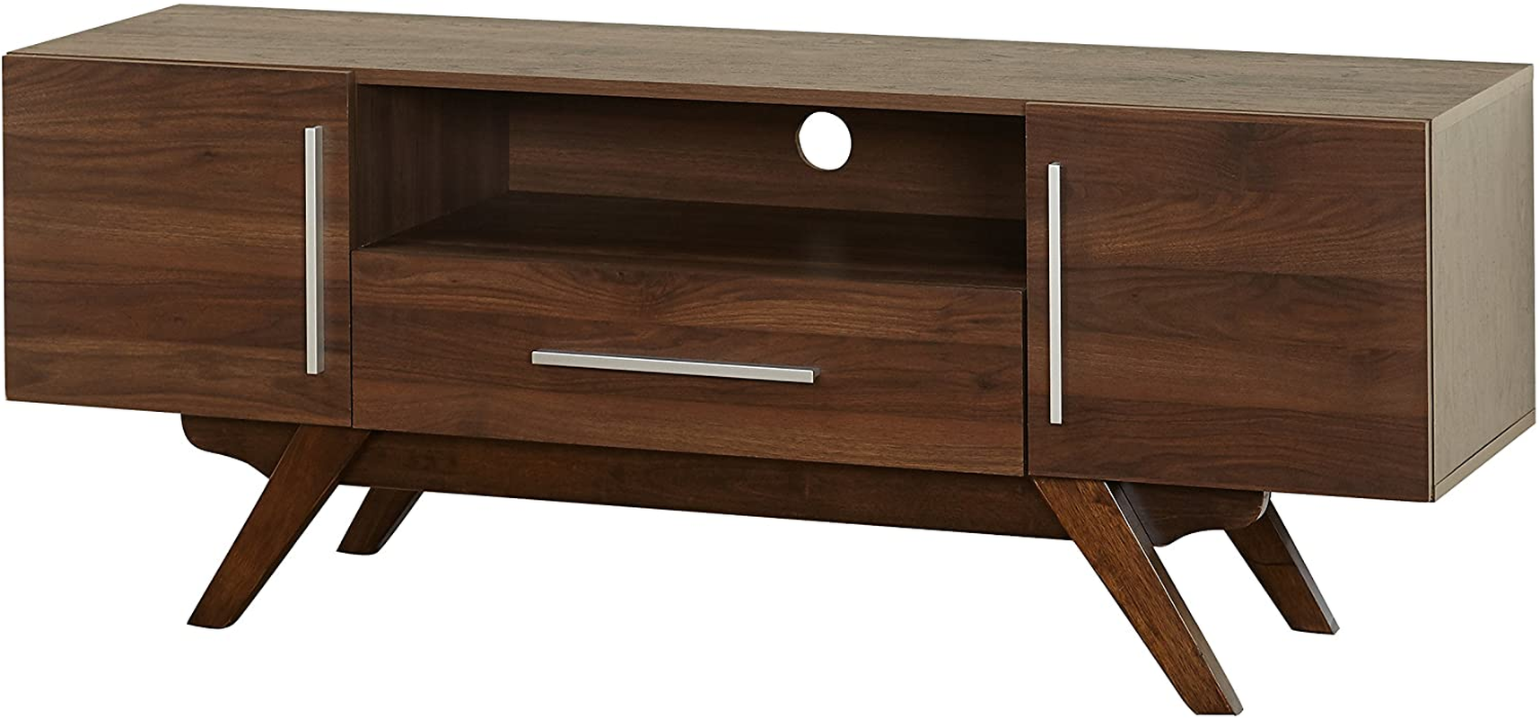 - ELEGANT DESIGN – The wood tv stand features a Mid-Century Style with a walnut finish showing off well-designed lines. The media stand has a classic design that creates a striking centerpiece for your home. A matching bookcase and tower sold separately.