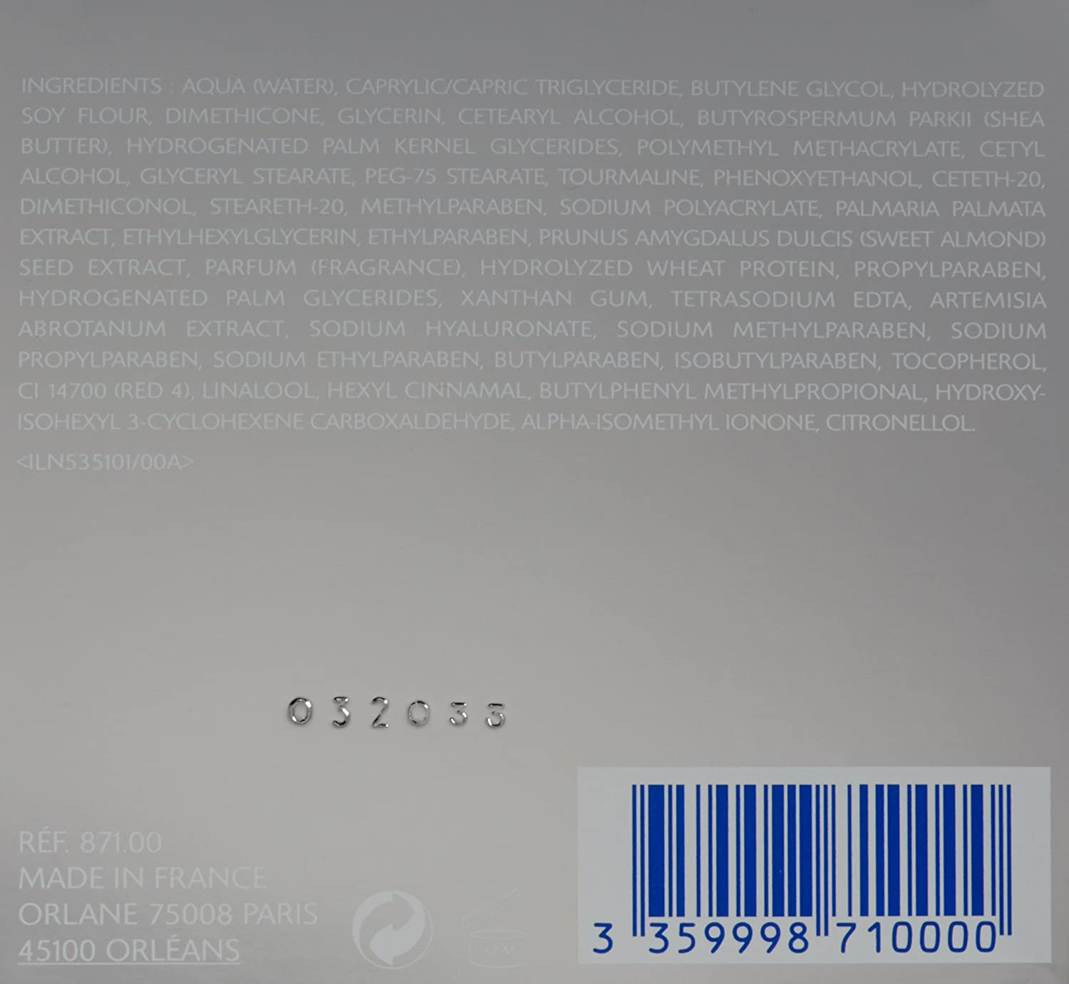 AQUA (WATER), CAPRYLIC/CAPRIC TRIGLYCERIDE, BUTYLENE GLYCOL, DIMETHICONE, GLYCERIN, CETEARYL ALCOHOL, BUTYROSPERMUM PARKII (SHEA BUTTER), HYDROGENATED PALM KERNEL GLYCERIDES, POLYMETHYL METHACRYLATE, CETYL ALCOHOL, GLYCERYL STEARATE, PEG-75 STEARATE, TOURMALINE, PHENOXYETHANOL, CETETH-20, DIMETHICONOL, STEARETH-20, ETHYLHEXYLGLYCERIN, SODIUM POLYACRYLATE, METHYLPARABEN, ETHYLPARABEN, PRUNUS AMYGDALUS DULCIS (SWEET ALMOND) SEED EXTRACT, PARFUM (FRAGRANCE), HYDROGENATED PALM GLYCERIDES, XANTHAN GUM, PROPYLPARABEN, TETRASODIUM EDTA, HYDROLYZED SOY PROTEIN, ARTEMISIA ABROTANUM EXTRACT, PALMARIA PALMATA EXTRACT, PENTYLENE GLYCOL, HYDROLYZED RICE PROTEIN, SODIUM HYALURONATE, TOCOPHEROL, CI 14700 (RED 4), LINALOOL, HEXYL CINNAMAL, BUTYLPHENYL METHYLPROPIONAL, HYDROXYISOHEXYL 3-CYCLOHEXENE CARBOXALDEHYDE, ALPHA-ISOMETHYL IONONE, CITRONELLOL.