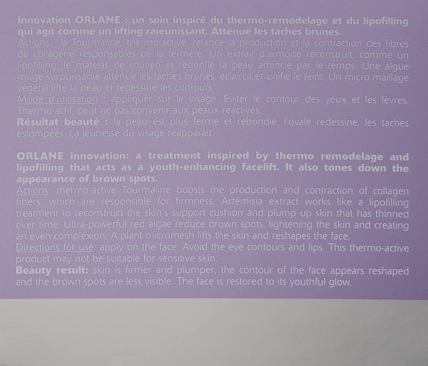 Remodel the face To slow the skin slackening process, Orlane draws inspiration from the latest esthetic-dermatology innovations, thermage and lipofilling.