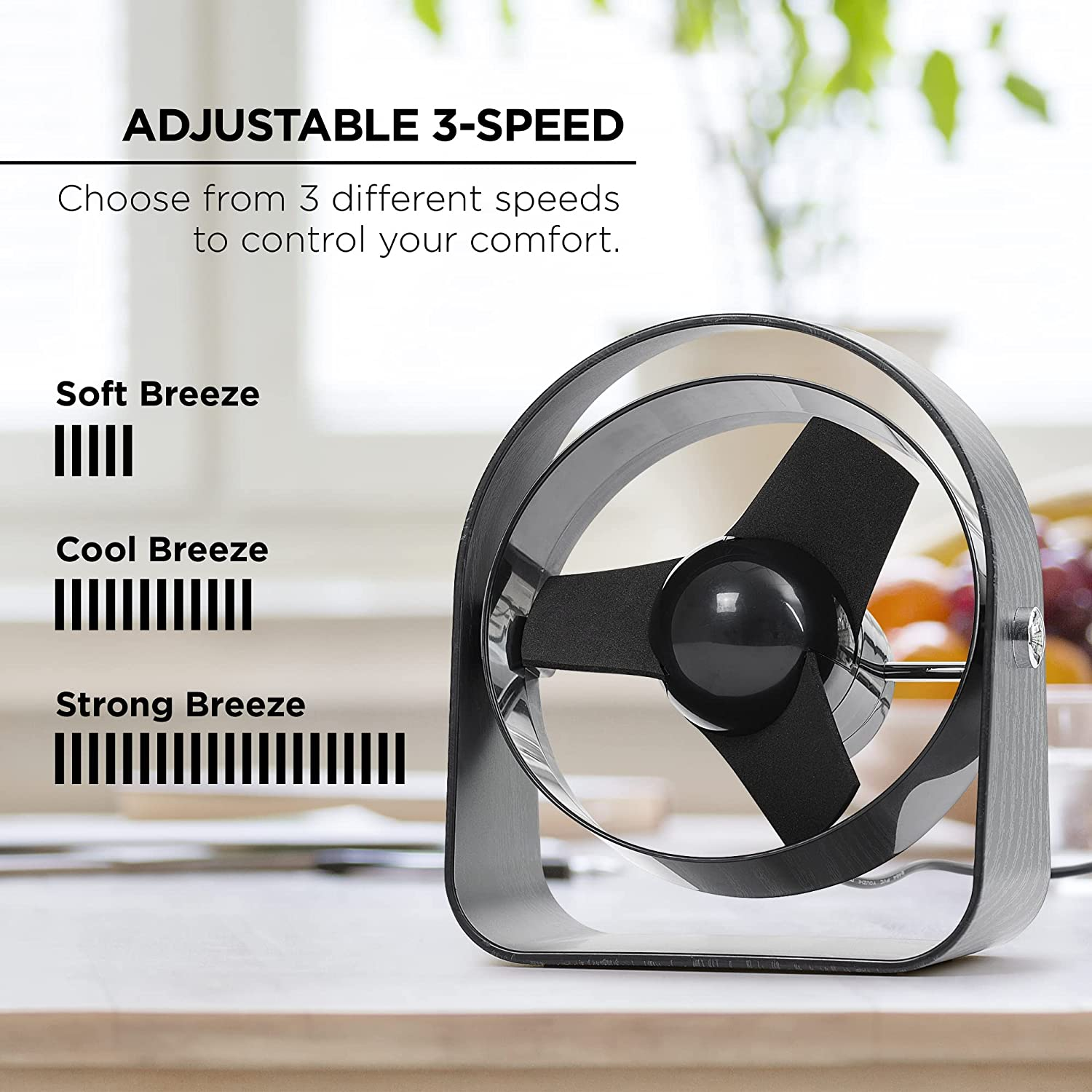 - 360 ROTATION: Cool yourself and your room with this 360-degree rotating fan design. Tilt for the perfect angle of refreshing breeze. The rotation combined with three speed settings means truly personalized comfort.